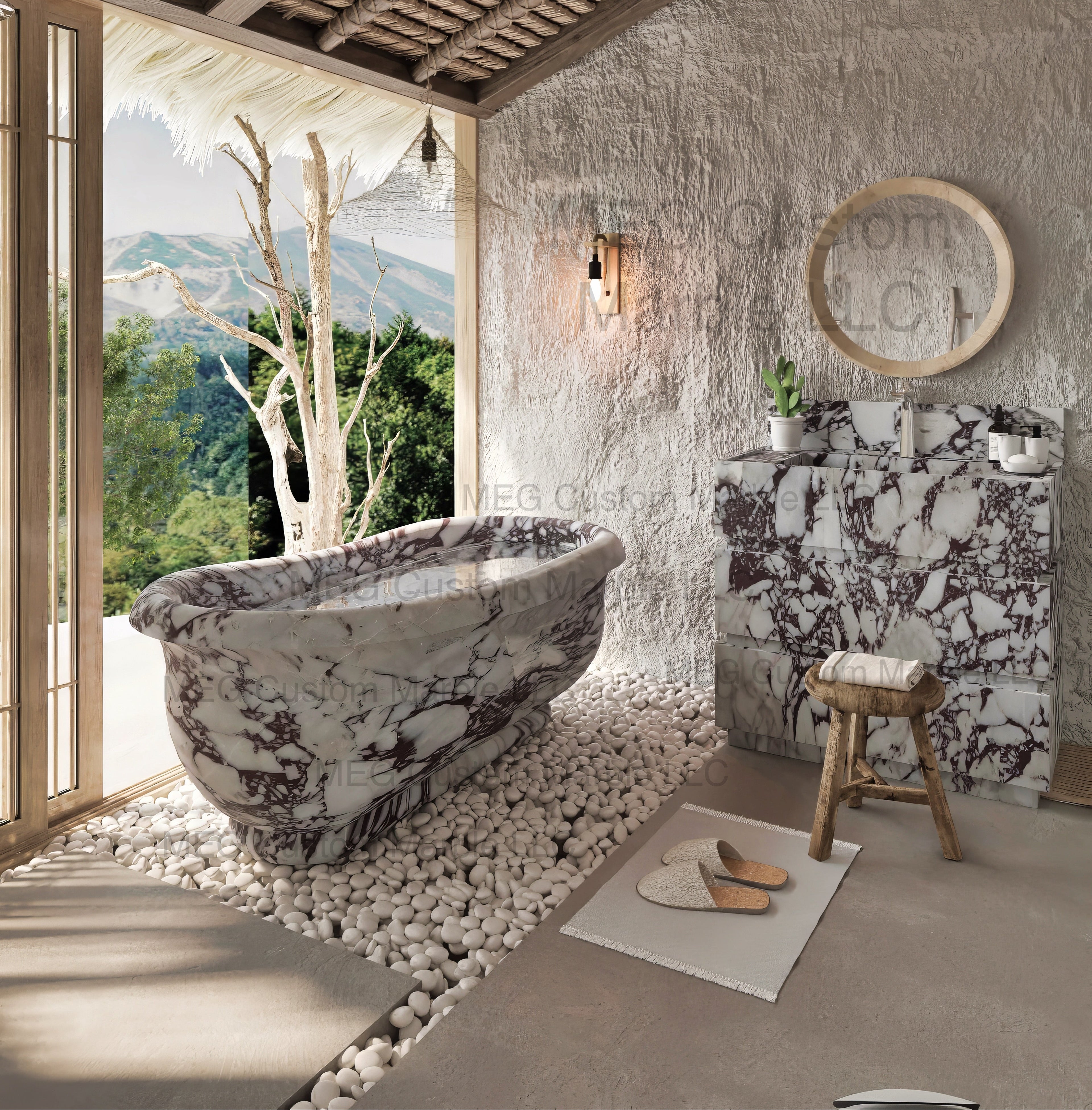 Bring timeless Italian luxury into your bathroom with our handcrafted Calacatta Viola...