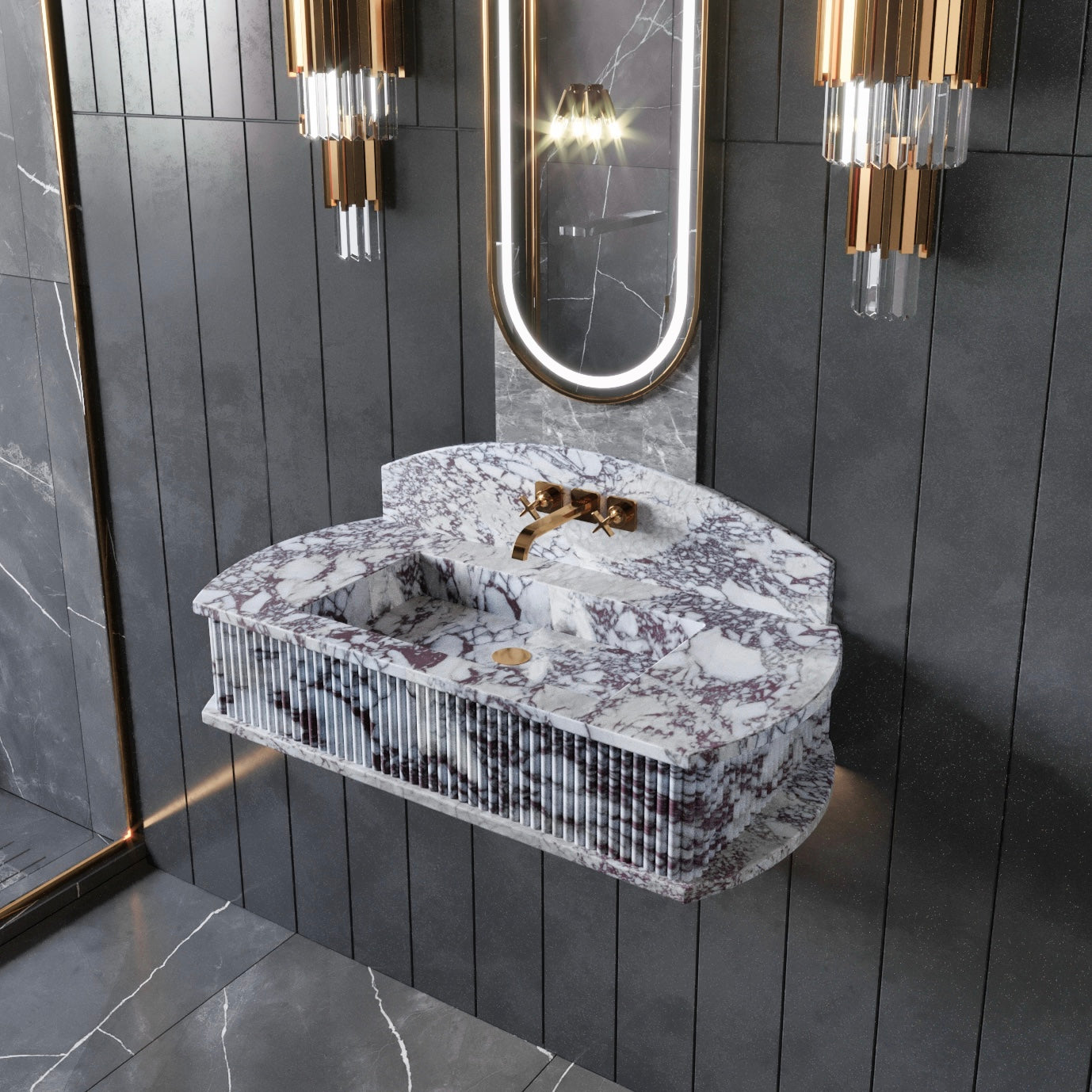 Fluted Marble Sink Wall Mounted