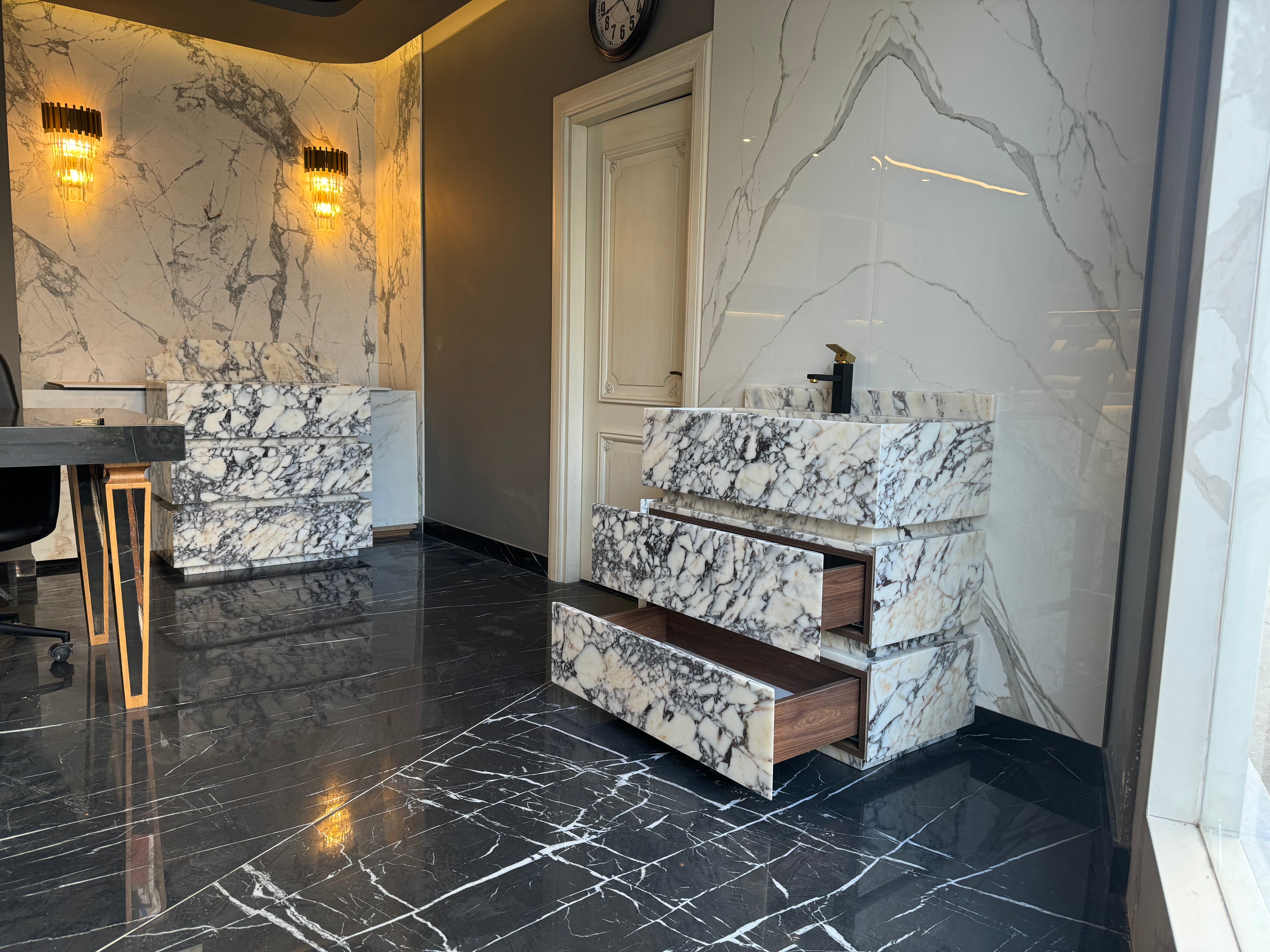 Calacatta Marble Vanity Sink, Functional Marble Drawers