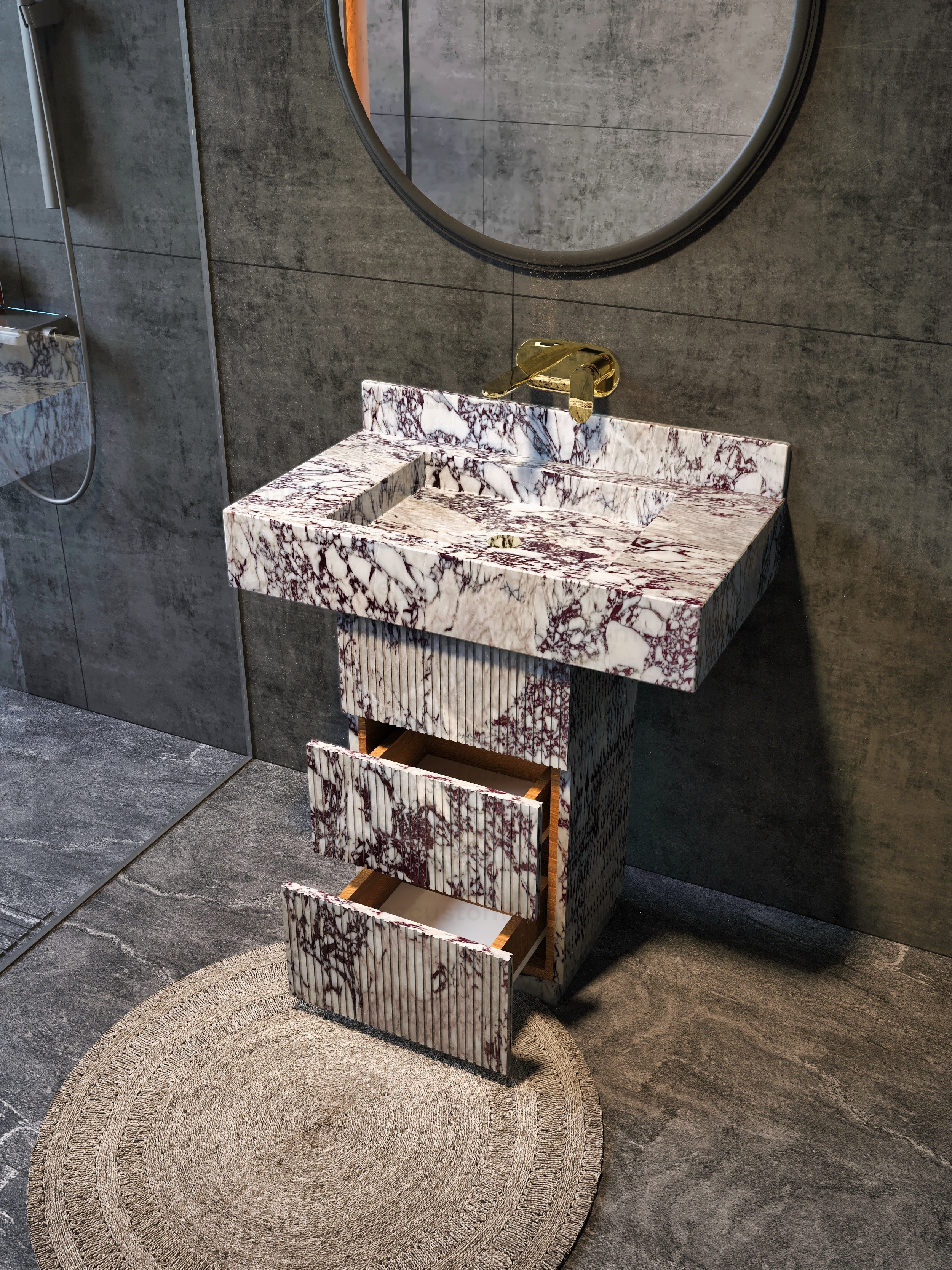Calacatta Viola Marble Bathroom Vanity with Marble Drawers