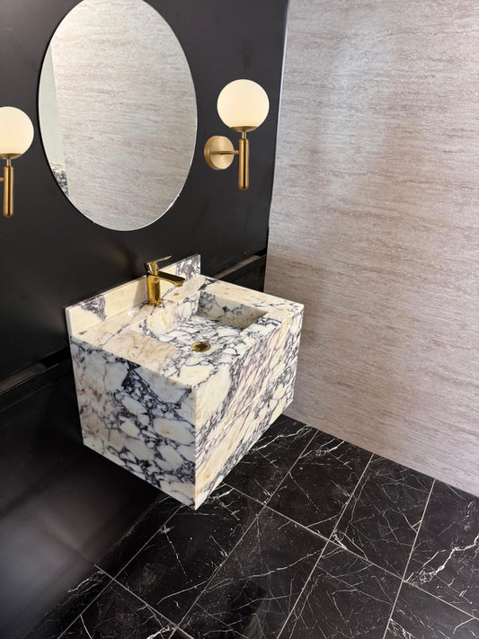 Wall Mounted Calacatta Viola Marble Sink, Modern Bathroom Vanity Sink