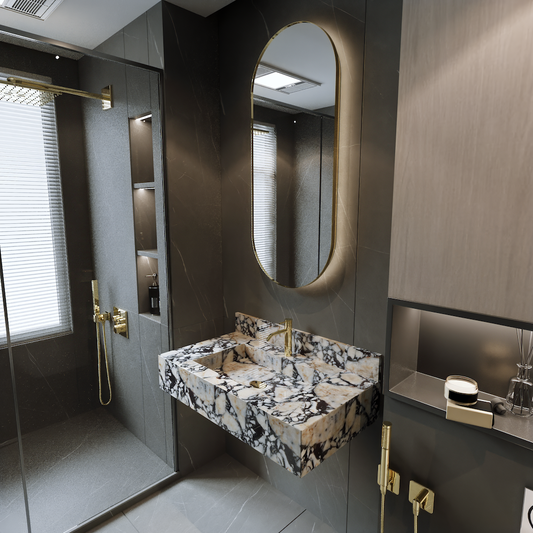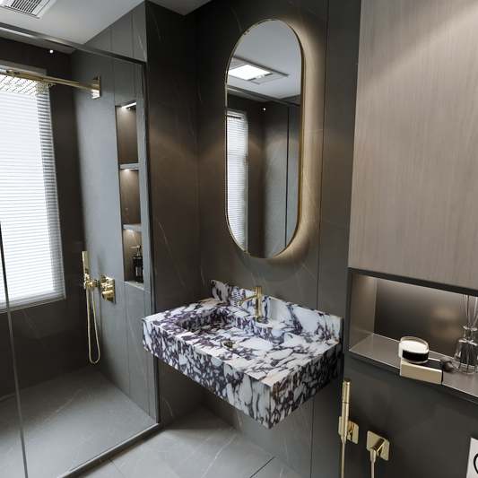 Wall Hung Marble Sink Calacatta Viola