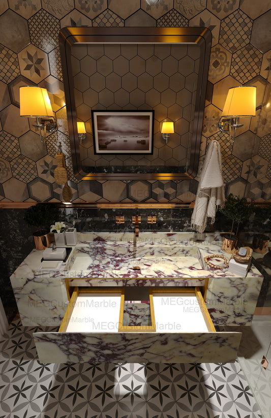 Calacatta Marble Vanity Sink, Functional Marble Drawers