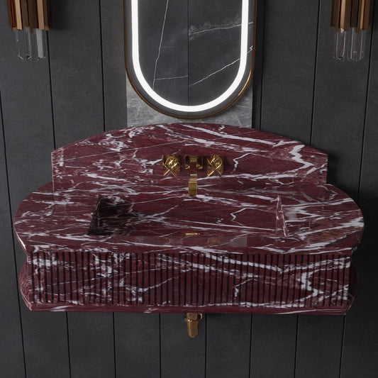 Luxury Calacatta Gold Wall Mounted Marble Vanity Sink with Scalloped Backsplash