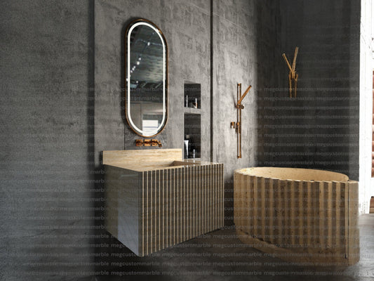 Modern Calacatta Viola Floating Marble Basin – Fluted Designer Vanity for Luxury Homes