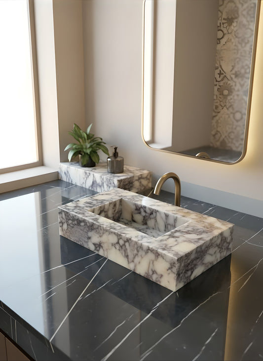 Handcrafted Calacatta Viola Marble Sink – Italian Designer Vessel Basin for Luxury Bathrooms