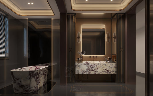 Modern Interiors Bathroom Marble Vanities, Custom Calalatta Viola Sink,