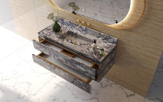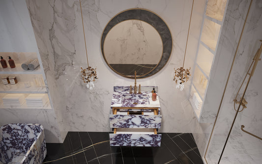 Wall Mount Calacatta Viola Marble Vanity Unit with Marble Drawers and Integrated Sink