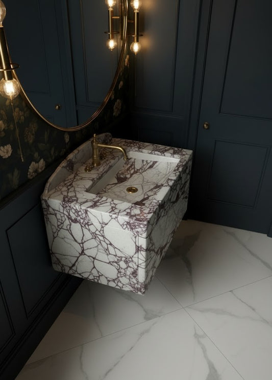 Elegant Floating Vanity Sink – Calacatta Viola Natural Marble Basin