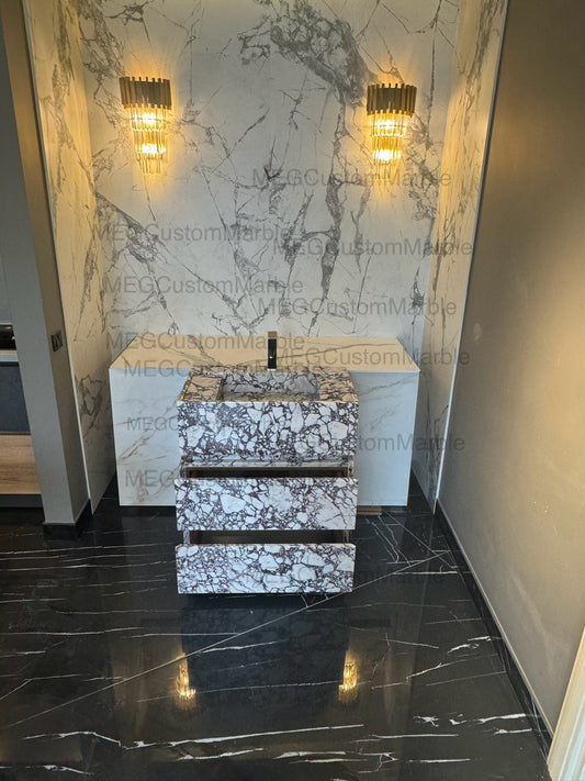 Calacatta Viola Marble Bathroom Vanity with Marble Drawers