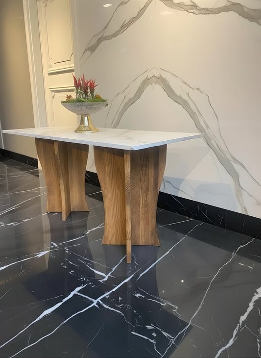 White Marble Console Table with Solid Wood Legs – Modern Entryway Design