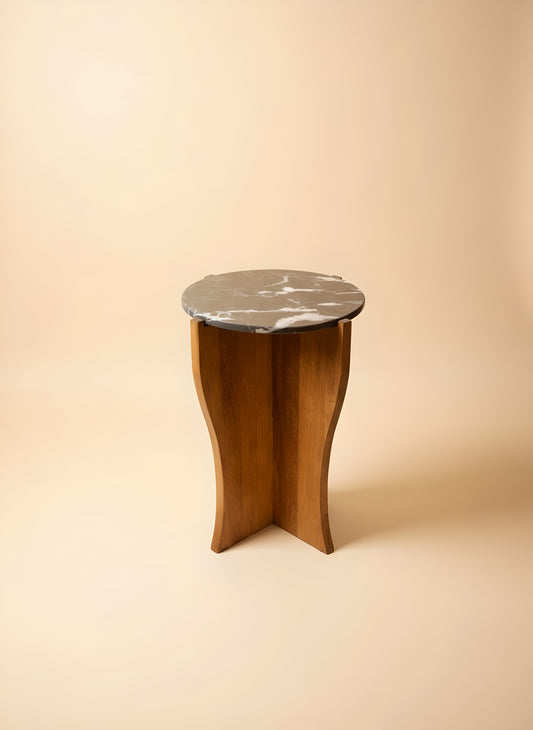 Handmade Calacatta Marble & Walnut Sculptural Side Table