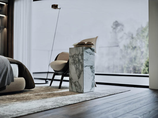 Calacatta Marble Side Table – Luxury Natural Stone Pedestal for Modern Interiors