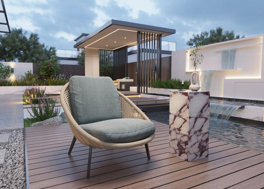 Calacatta Viola Marble Outdoor Side Table – Luxury Garden Pedestal