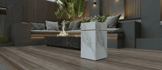 Calacatta Viola Marble Outdoor Side Table – Luxury Garden Pedestal