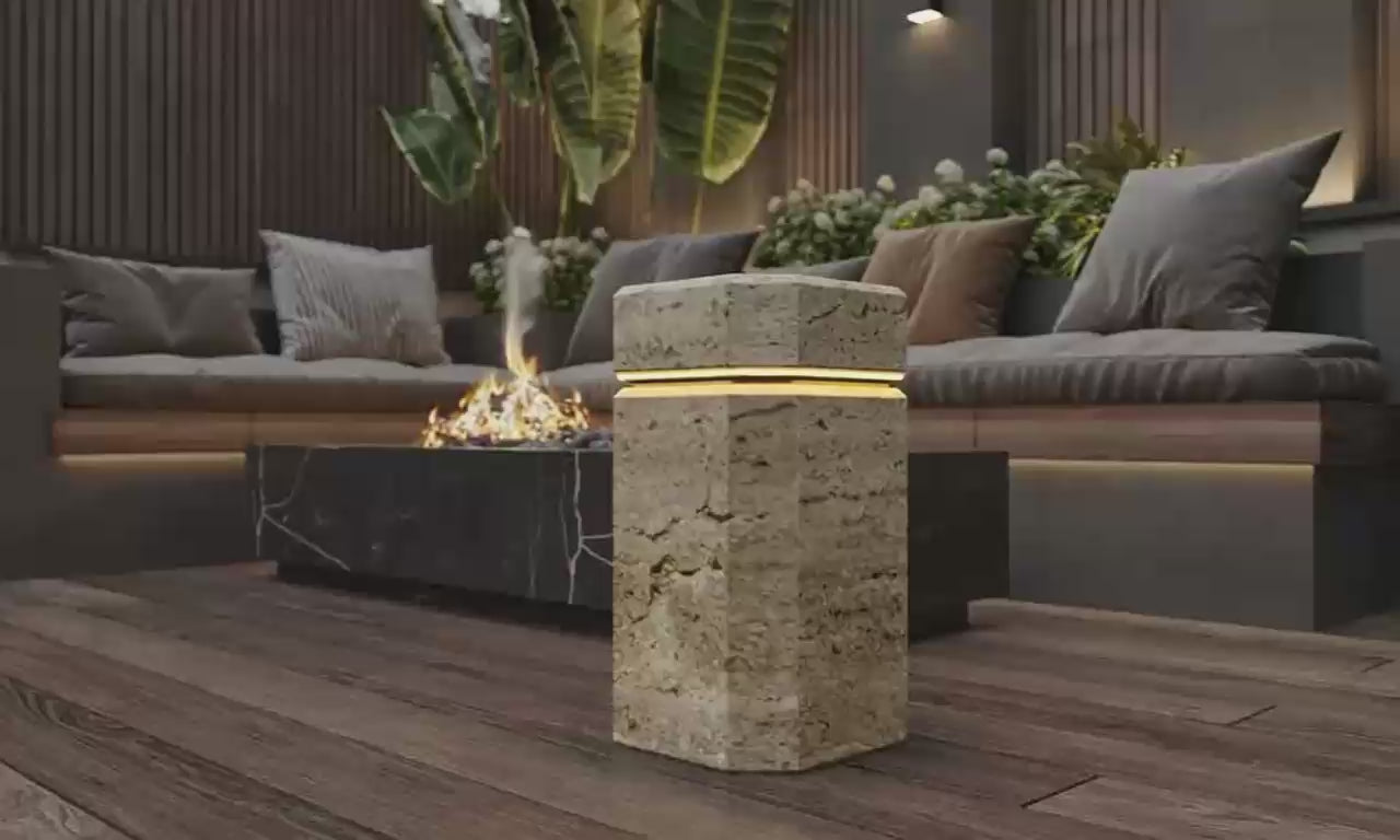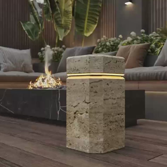 This handcrafted marble side table is designed from premium Travertine stone, enriched with a sleek integrated LED light band for a modern and elegant look. The natural stone texture blends perfectly with luxury interiors and outdoor lounge spaces, making it a versatile statement piece.